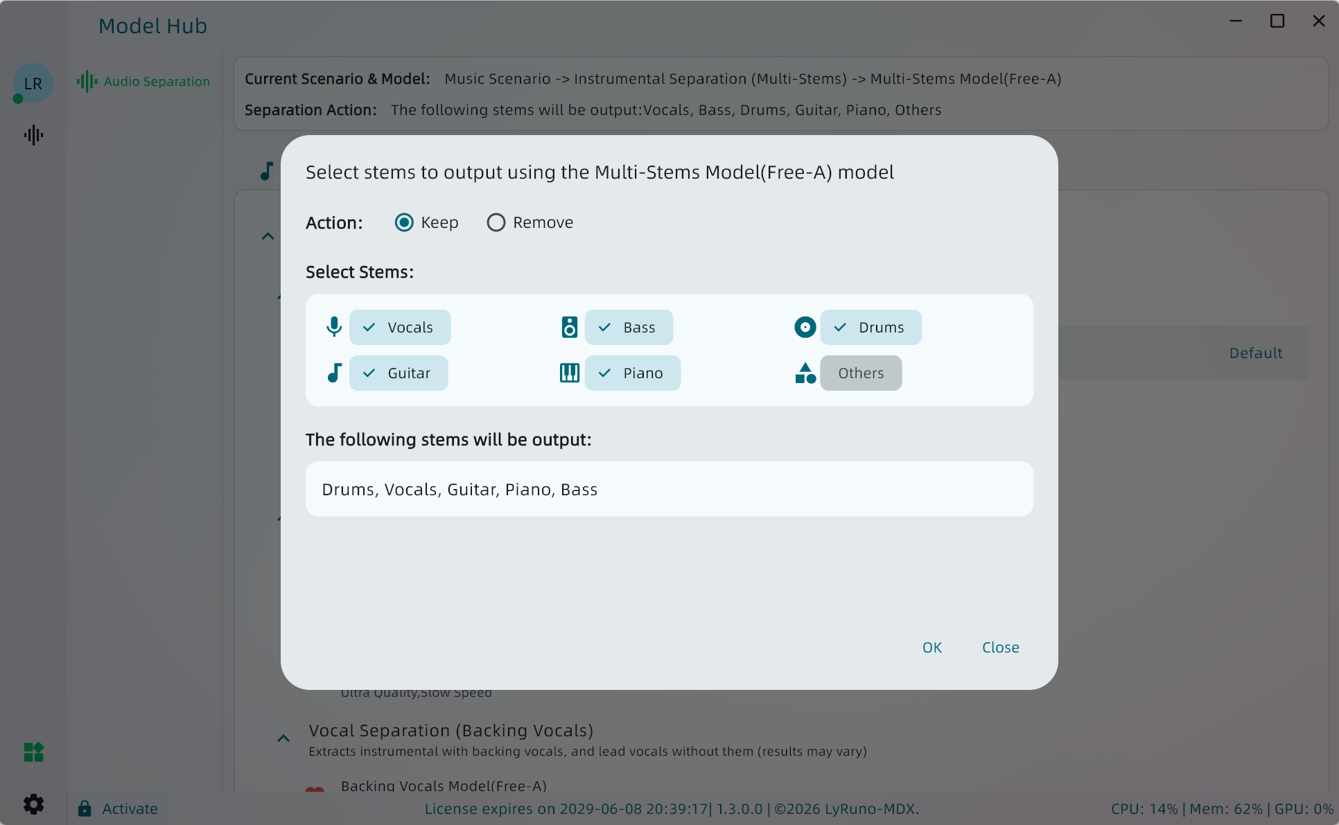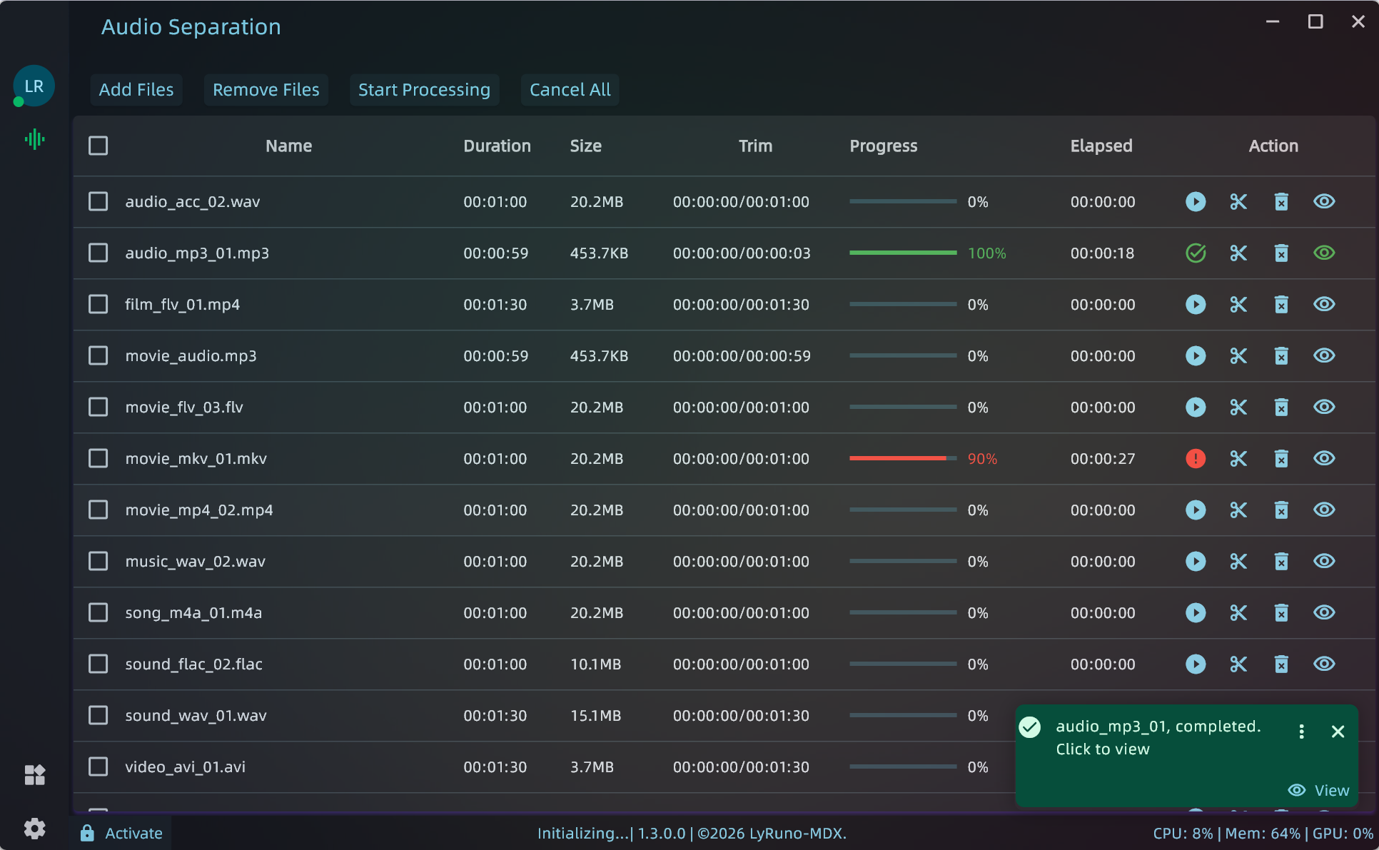 Extract dialogue, sound effects, and background music from audio — even when background music contains singing, it can still be perfectly separated from dialogue